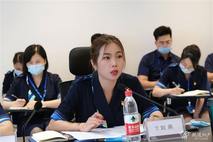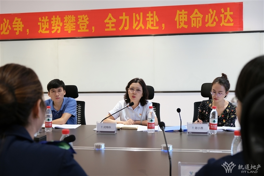 參觀結(jié)束后,閉梅秋一行聽取了軌道地產(chǎn)咨詢公司上半年經(jīng)營工作情況匯報。劉燕從公司目前經(jīng)營范圍、運營模式、企業(yè)定位、2022年上半年營銷工作措施及成效、黨風(fēng)廉政建設(shè)工作情況等進(jìn)行全面匯報。與會人員就目前在營銷業(yè)務(wù)工作方面存在的難點、經(jīng)營困境進(jìn)行了交流討論。