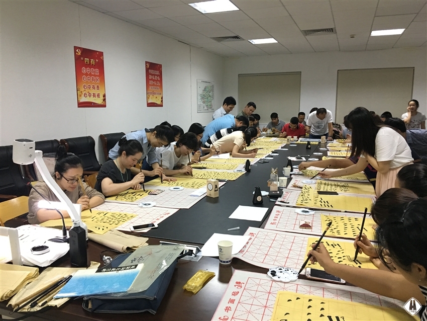 7月25日中午12:30,書(shū)法班開(kāi)班,廣西書(shū)法家協(xié)會(huì)的蒙匯鵬老師先從執(zhí)筆姿勢(shì)、手法運(yùn)用、字體結(jié)構(gòu)等基礎(chǔ)理論知識(shí)進(jìn)行了講授,在實(shí)踐練習(xí)過(guò)程中,大家認(rèn)真臨摹,反復(fù)練習(xí),個(gè)個(gè)興趣盎然,現(xiàn)場(chǎng)氣氛濃厚,一片翰墨飄香。
