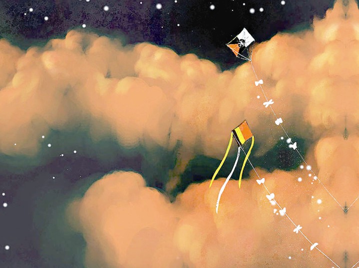 小囡囡就這么仰望著那個高掛在天上的風(fēng)箏,她也不去追,不去搶。因為看著風(fēng)箏還在天上,心里就還有夢。如果把它拿在手上,可能,她就再也不會做夢了!