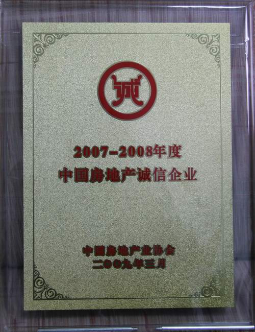 熱烈祝賀中房集團(tuán)南寧房地產(chǎn)開發(fā)公司榮獲2007-2008年度中國(guó)房地產(chǎn)誠(chéng)信企業(yè)