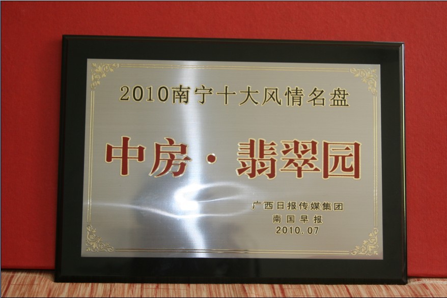 熱烈祝賀中房·翡翠園榮獲“2010南寧十大風(fēng)情名盤(pán)”稱號(hào)